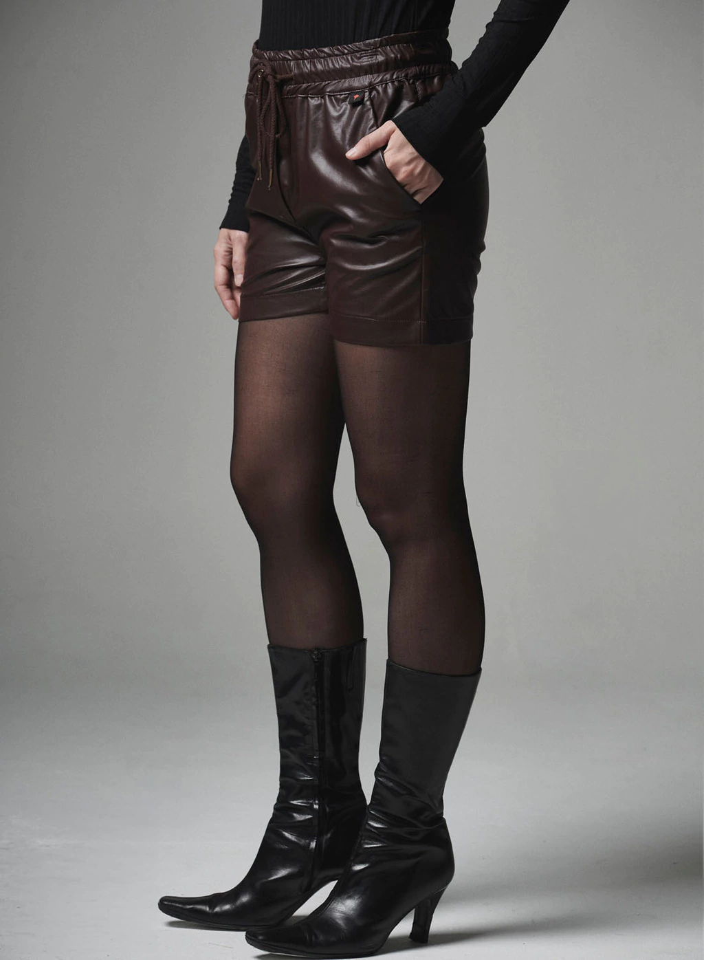 Short confeccionado en vegan leather, que imita la textura del cuero sin usar materiales de origen animal. Tiene cintura con elástico y cordón que permite ajustarla y adaptarla a los distintos cuerpos. En el frente, tiene bolsillos laterales con forro al tono y en la parte trasera dos pinzas que le dan el calce perfecto. El largo es a mitad de la pierna. El ítem que no podes dejar de tener para una salida combinandola con la chaqueta Inside Coco y medias.